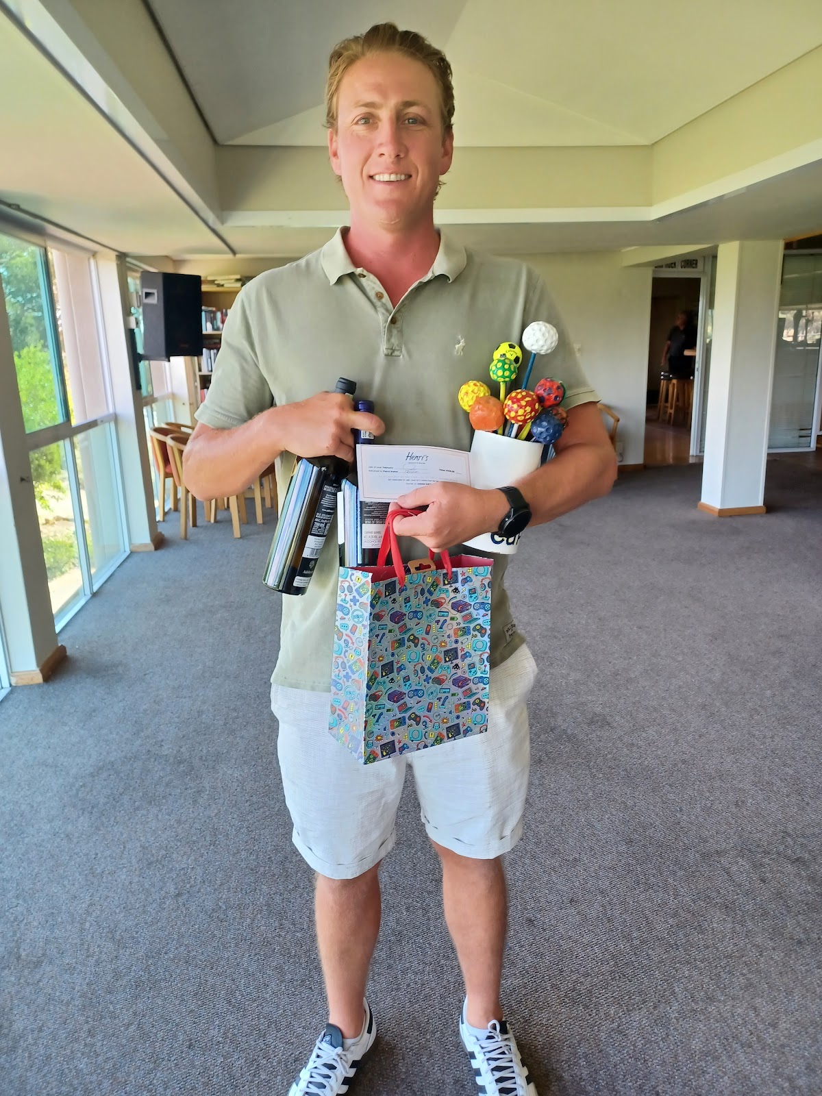 | Ovan syns prisbordet men också vår fina golfbana med Helderberg i bakgrunden |